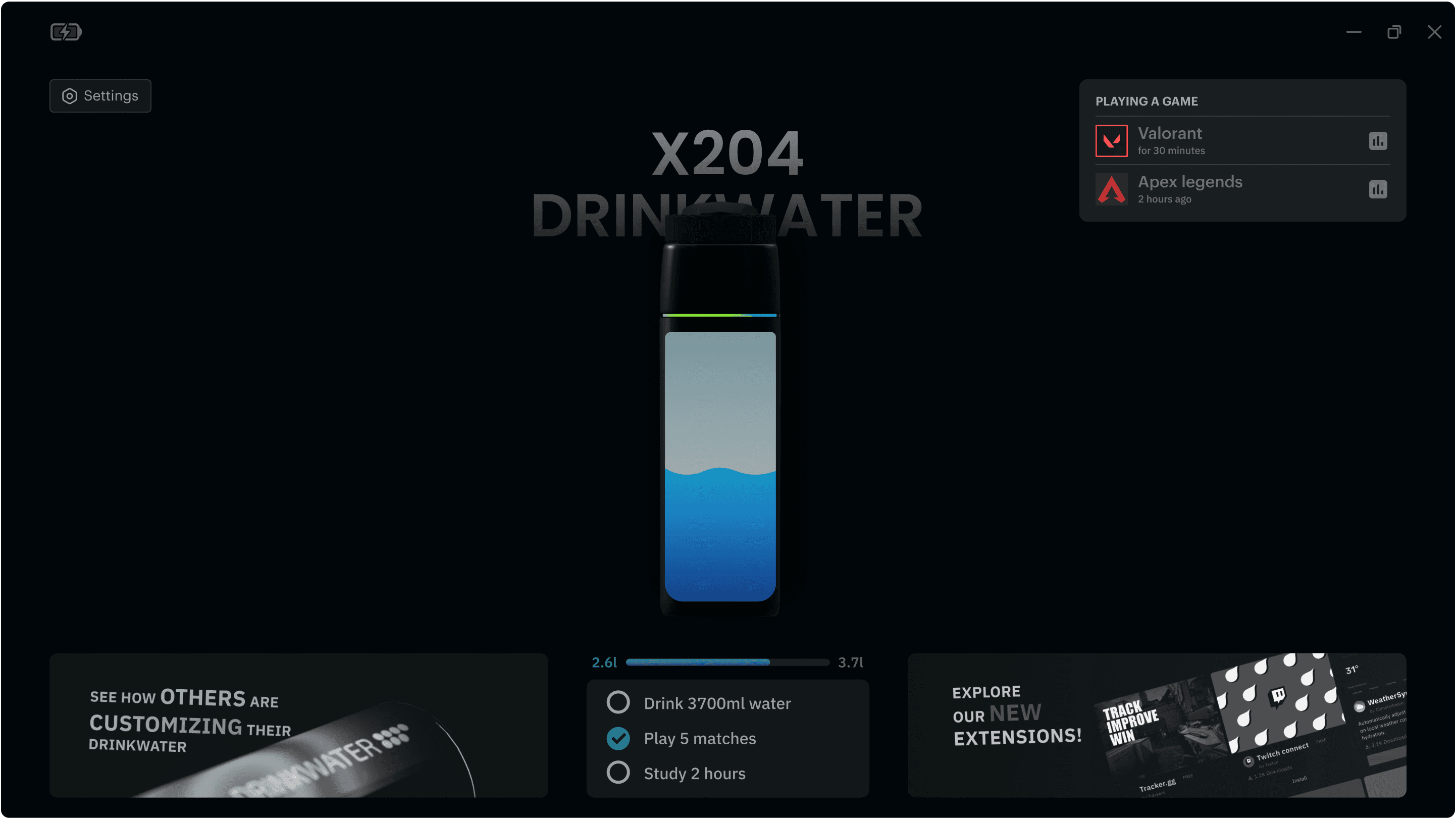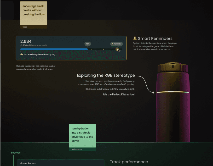 Helping gamers to overcome dehydration and improving their focus using the power of User Experience design.
